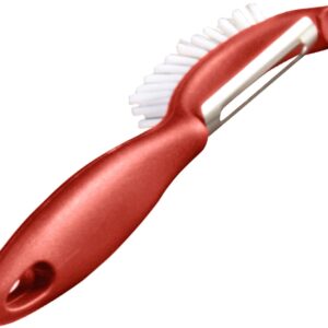 Rachael Ray Kitchen Gadgets Vegetable/Fruit Peeler with Brush, 3-In-1 Tool, Red