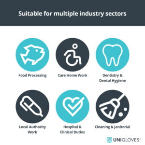 Our Unicare disposable glove range has been developed to provide exceptional levels of comfort and includes gloves manufactured in nitrile, vinyl, vinyl/nitrile hybrid blend, latex and polyethylene. Unicare gloves consist of both non-medical and medical grade options which are particularly suited to use in healthcare examination, dental and veterinary care.