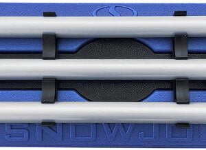 Snow problem! The Snow Joe snow broom model SJBLZD makes quick work of removing the snow piled on the roof, hood, trunk or windshield of your vehicle. Its patented dual-purpose design features an oversized 18″ Wide broom head on one end & a built-in ice scraper on the other, so you can quickly push heavy, wet snow off your car, truck or SUV, then clear away the ice build-up on your windshield with just one tool. Its durable, non-abrasive foam head safely & effectively sweeps snow off your vehicle without damaging its paint, trim or glass surfaces. Plus, its interlocking pole offers two length options — 33″ Or 52″ — to provide maximum reach with minimal strain & disassembles easily for compact storage. Weighing only 1 4 lb, the snow broom is super easy to handle & stores neatly inside the trunk of your car with its built-in bracket holders. Get equipped this winter with the Snow Joe snow broom & clear out fast from tough winter messes.
